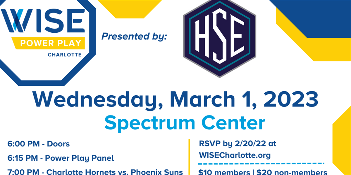 Join WISE Charlotte and our friends at Hornets Sports & Entertainment for our annual Power Play Event. The evening will start with our Power Play Panel (doors @ 6:00pm, panel @ 6:15pm) featuring a line-up of impressive women in and around the HSE organization - check them out below. Following the panel, guests will get to see our hometown Charlotte Hornets take on the Phoenix Suns @ 7:00pm.
